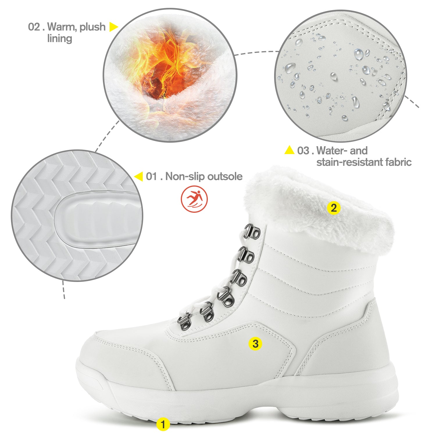 Tomaia in pelle premium: la pelle PU respinge la neve e l'acqua, mantenendo i piedi asciutti tutto il giorno.
