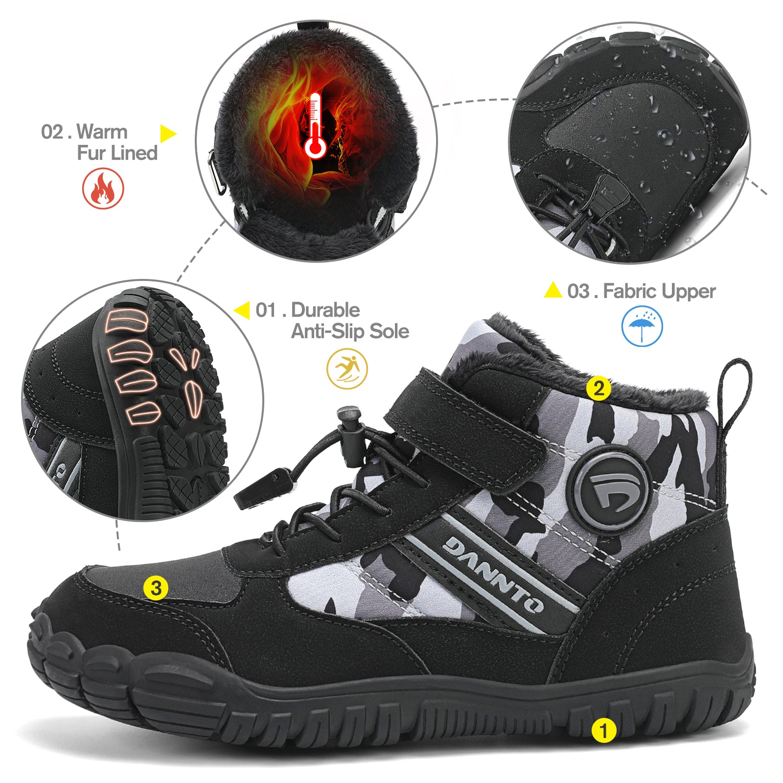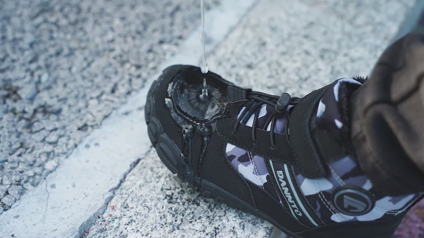 20 SEC WATCH: DANNTO Kid’s wide-fit winter boots combine a spacious barefoot-style toe box, warm faux fur lining, secure bungee & Velcro fit, durable cushioned sole, and rugged anti-slip rubber outsole to keep little feet safe and comfortable on snow, ice, and slippery winter terrain.