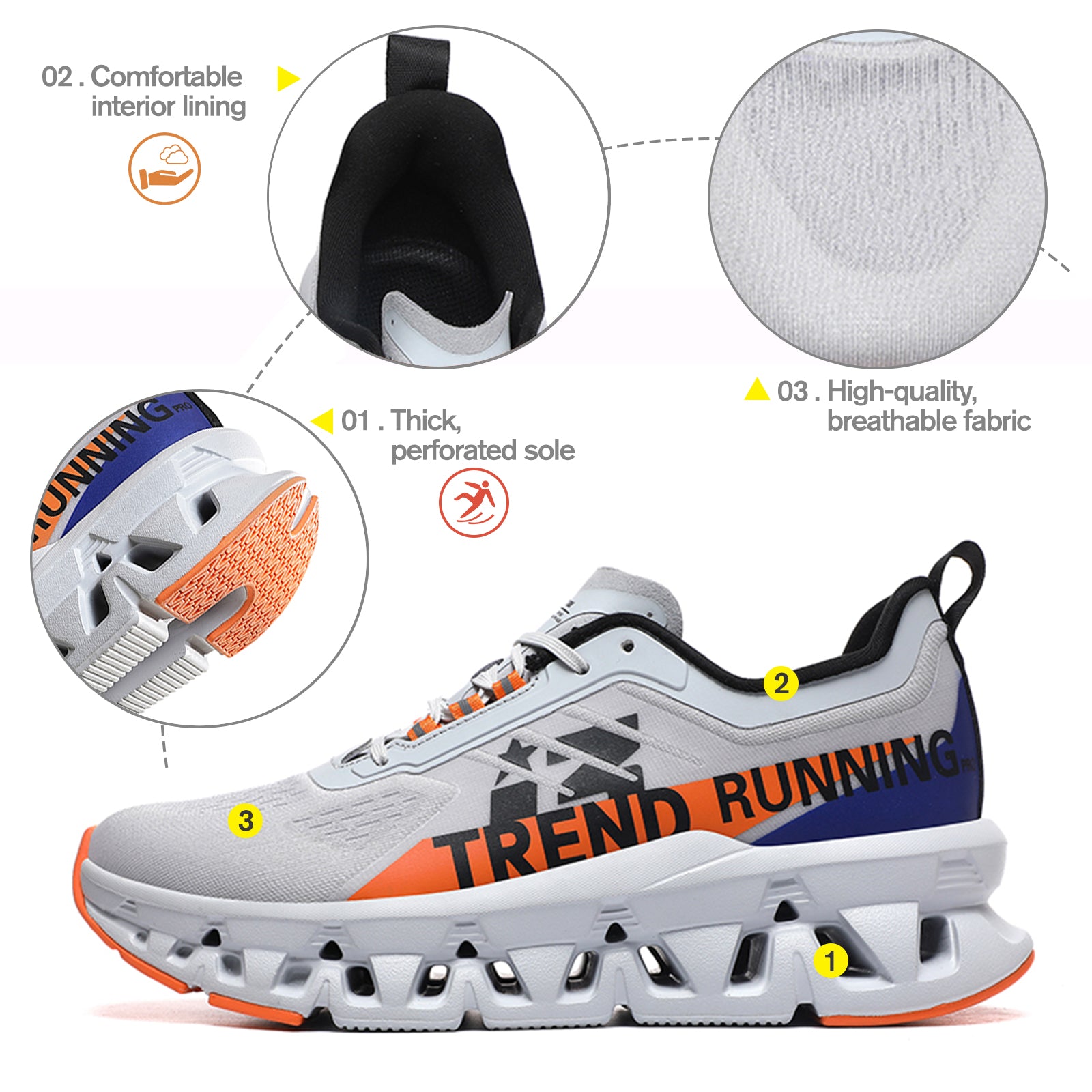 Thickened Cushion Midsole – Soft rebound with long-lasting comfort.