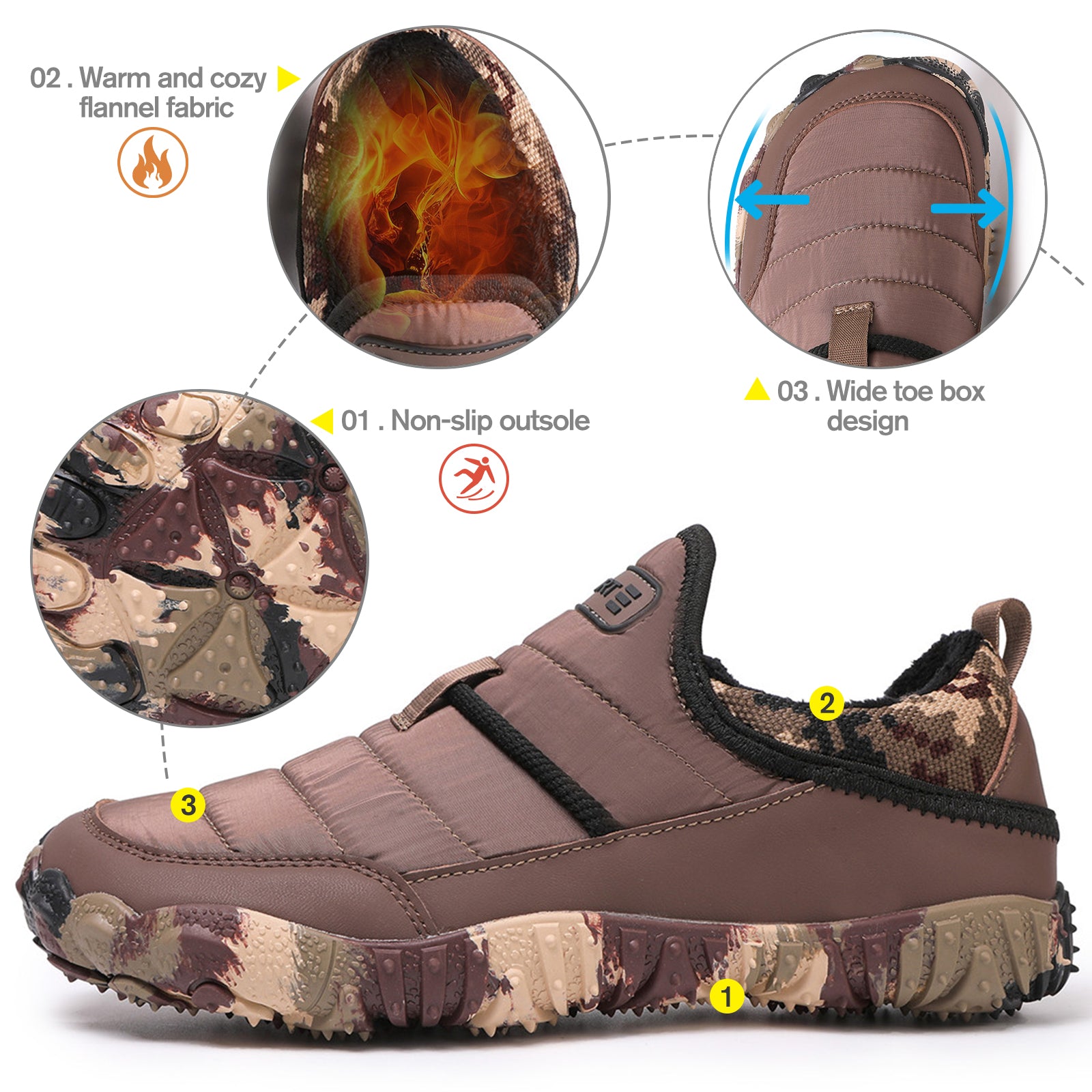 360° Warm Fleece Lining – Plush crystal fleece interior wraps your feet in warmth, keeping them cozy without bulk.