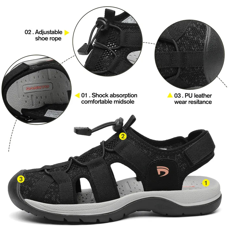Equip yourself with sandals designed for your hiking expeditions. With sturdy rubber soles for grip and reduced foot pressure, they ensure comfort on rugged trails.